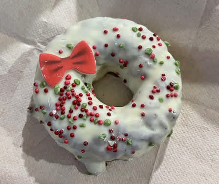 ラテとクリスマス・リース型のビスケットをご馳走してくださいました