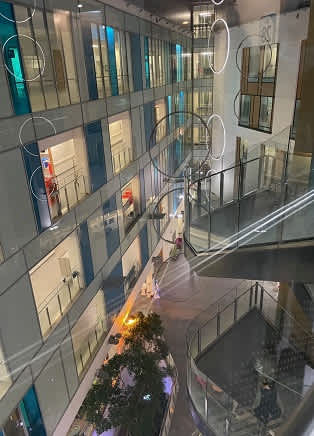 吹き抜けの通路はたっぷりスペースがあり、すごく明るいし清潔な印象