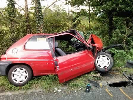 プジョー同士の衝突事故で、26歳女性は赤いほうを運転していたとか。