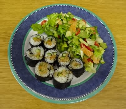 きゅうりと一緒に海苔巻にしました。 夕飯は、これとサラダ。 オットーは少食なので、これ以上何か作っても 「食べ切れない」 と残しますからね。