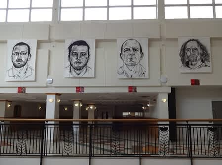寂しさを埋めるかのように、壁の高い位置にグロスター・ラグビー・チームの面々の肖像画が掛かっていました。