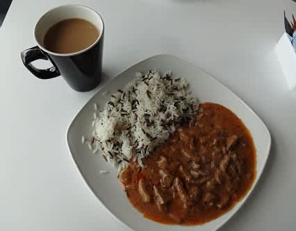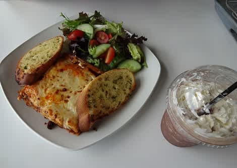大きなスーパーの2階のカフェでランチに。 ムスメはラザニアとチョコレート・オレンジ・フラッペ、私はビーフ・ストロガノフとコーヒーにしました。