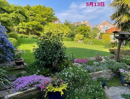 冬枯れしていた裏庭も、大分もっさりしてきました。