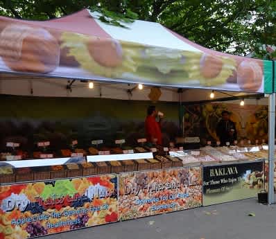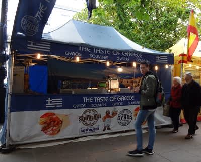 ギリシャの味・・・って、どんなんだろう? 食べものだけでなく、モノを売る屋台もあった。