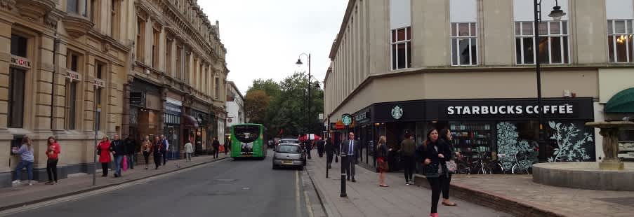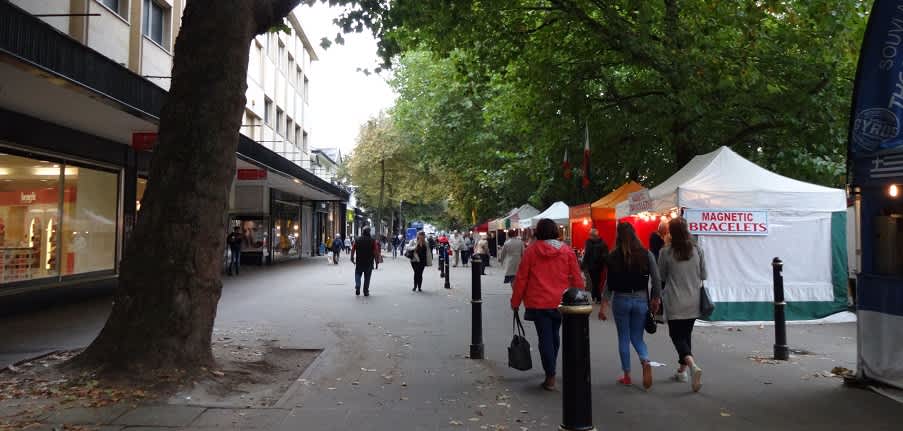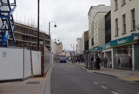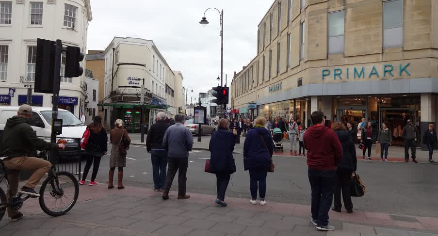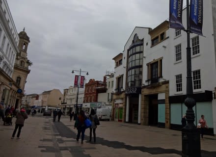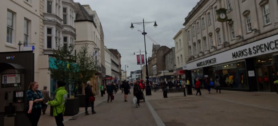 チェルトナムのホコ天ショッピング・ストリートの東側。 天気が今ひとつだったのが残念。