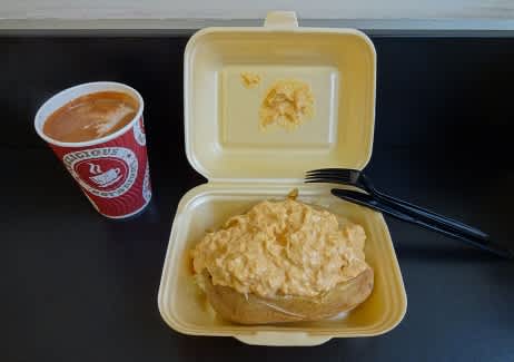 ところがチキン・ティカをトッピングしたジャケット・ポテトは、99ペンスから1.99ポンドに値上がりしていてショック!