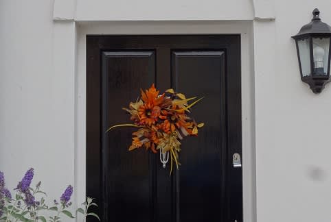 駐車場に戻る途中で見かけたかわいいリース。 秋らしい色使いが素敵