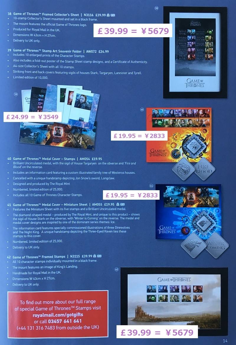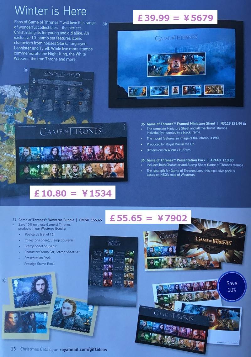 ゲーム・オブ・スローンズのスペシャル切手も出ていたんですね。これは英国産ではないですけどね。