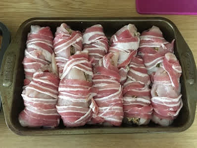 )を詰め、ベーコンで巻き、オーブン焼きにしたものがメイン。
