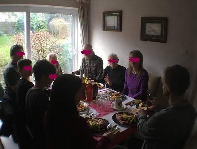 義弟③(義妹の夫)が撮ってくれた集合写真です。義弟③が抜けているので総勢9人。義弟②は独身で、クリスマスは両親宅で過ごします。