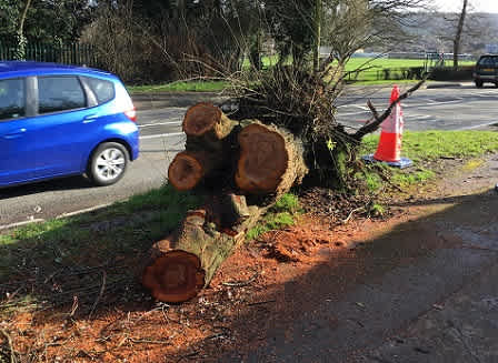 かなり大きな木でした。一応応急処置をして、歩行者が通過できるようにしてありました。