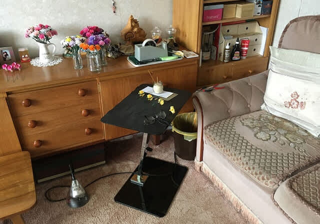 (床の卓上ライトは、夜必要なので使います。目がどうにも・・・何せアラカンですから・・・
